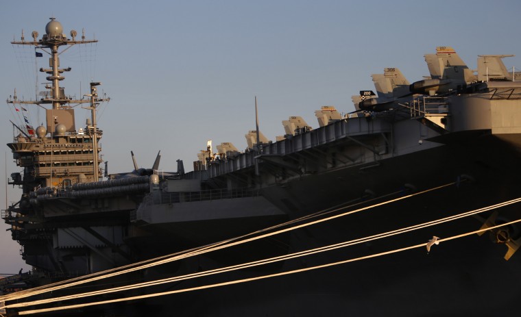 The jet was parked forward of the island on deck when the fire began, according to a Navy news release. The pilot ejected and landed on the flight deck. He received medical treatment onboard the ship and then was transferred to New Hanover Regional Medical Center in Wilmington, N.C.